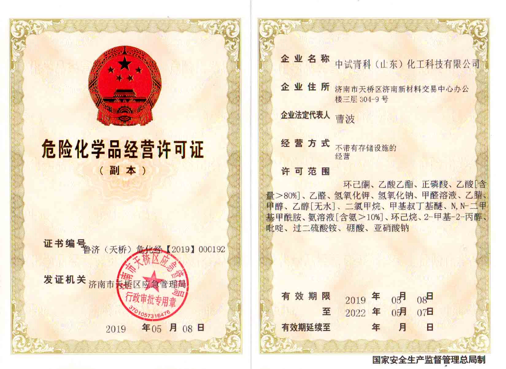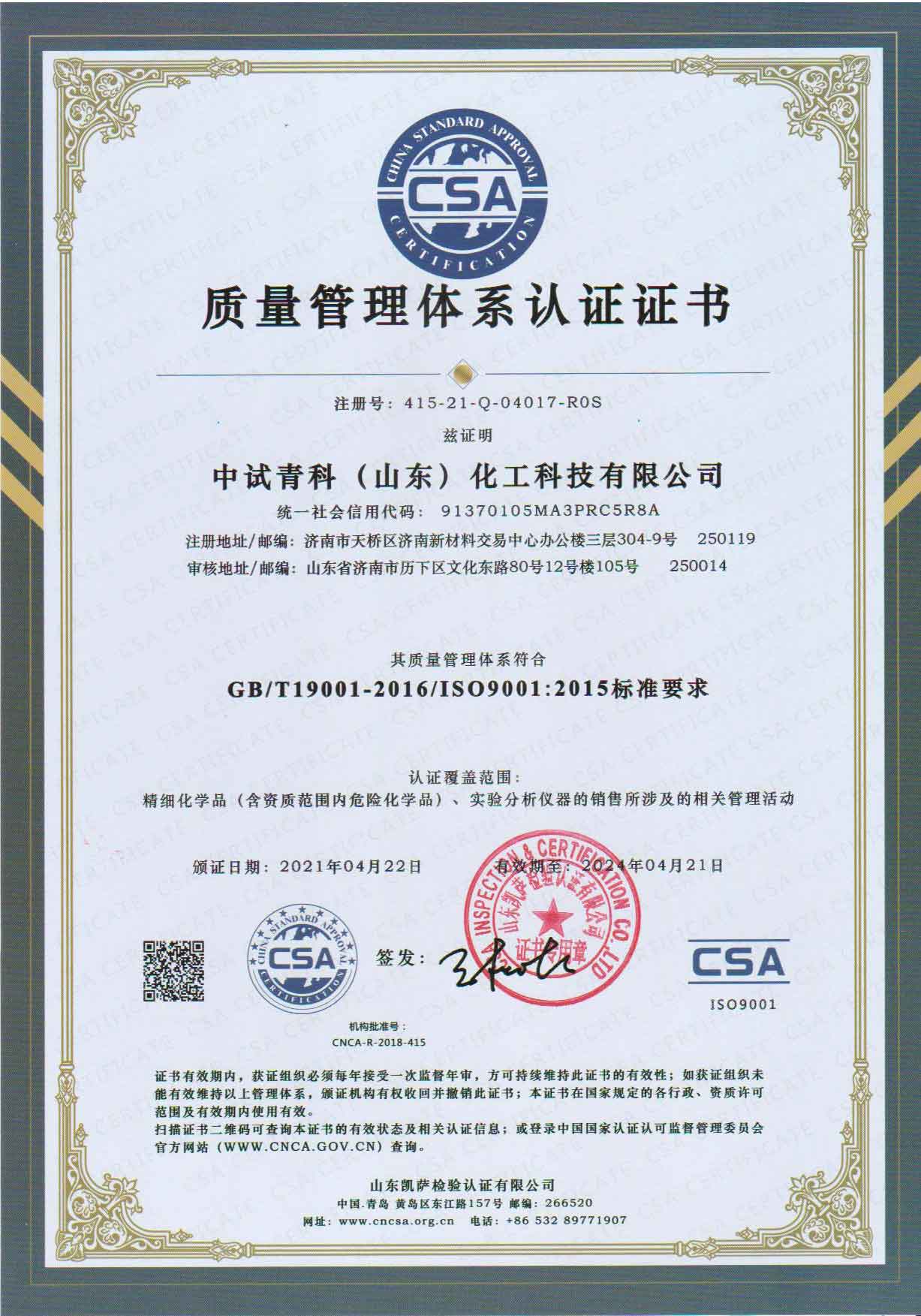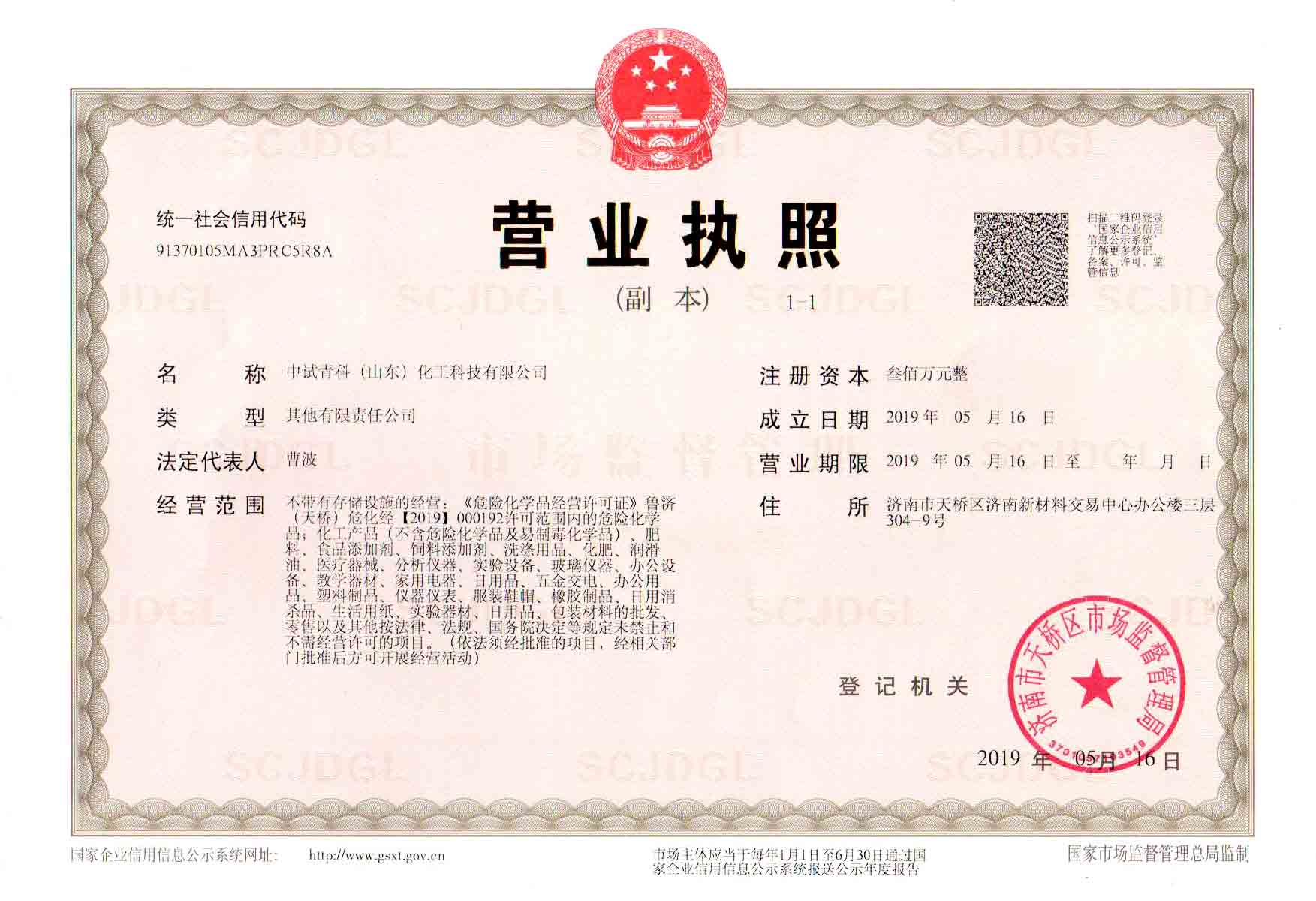 中试青科(山东)化工科技有限公司是由原山东省化工研究院中试室与科技器材公司合并而成。 山东省化工研究院中试室承担研究院中试研究工作。自一九八零年起,从事常用化学试剂的研究、开发和生产,系中国化学试剂工业学会会员单位,生产的化学试剂在省内外享有较高声誉,成为许多企业、行业的指定产品。山东省化工研究院科技器材公司自一九八二年面向全省供应化学试剂、玻璃器皿、分析化验仪器等科研、生产用物资,拥有大量一流的供应商和广泛的用户群体。其经营产品均出自国内外知名企业,在业界内享有很高的信誉。 公司一贯秉承“质量第一、用户至上”的经营宗旨,倡导“共享先进科技,求其创新”的企业理念,致力提升产品质量和服务质量。期待与各界朋友携手合作,迈向永续经营! 开票资料:全称:中试青科(山东)化工科技有限公司地址:济南市天桥区济南新材料交易中心办公楼三层304-9号传真:0531-82663178 82963704开户行:建行济南文化东路支行帐号:370501618802000...
